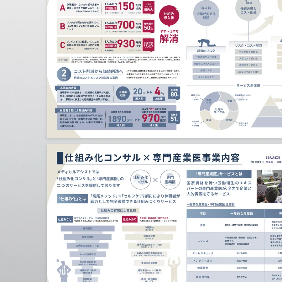 提案書・サービス紹介・社内向け資料を、構成設計から制作まで対応します。
